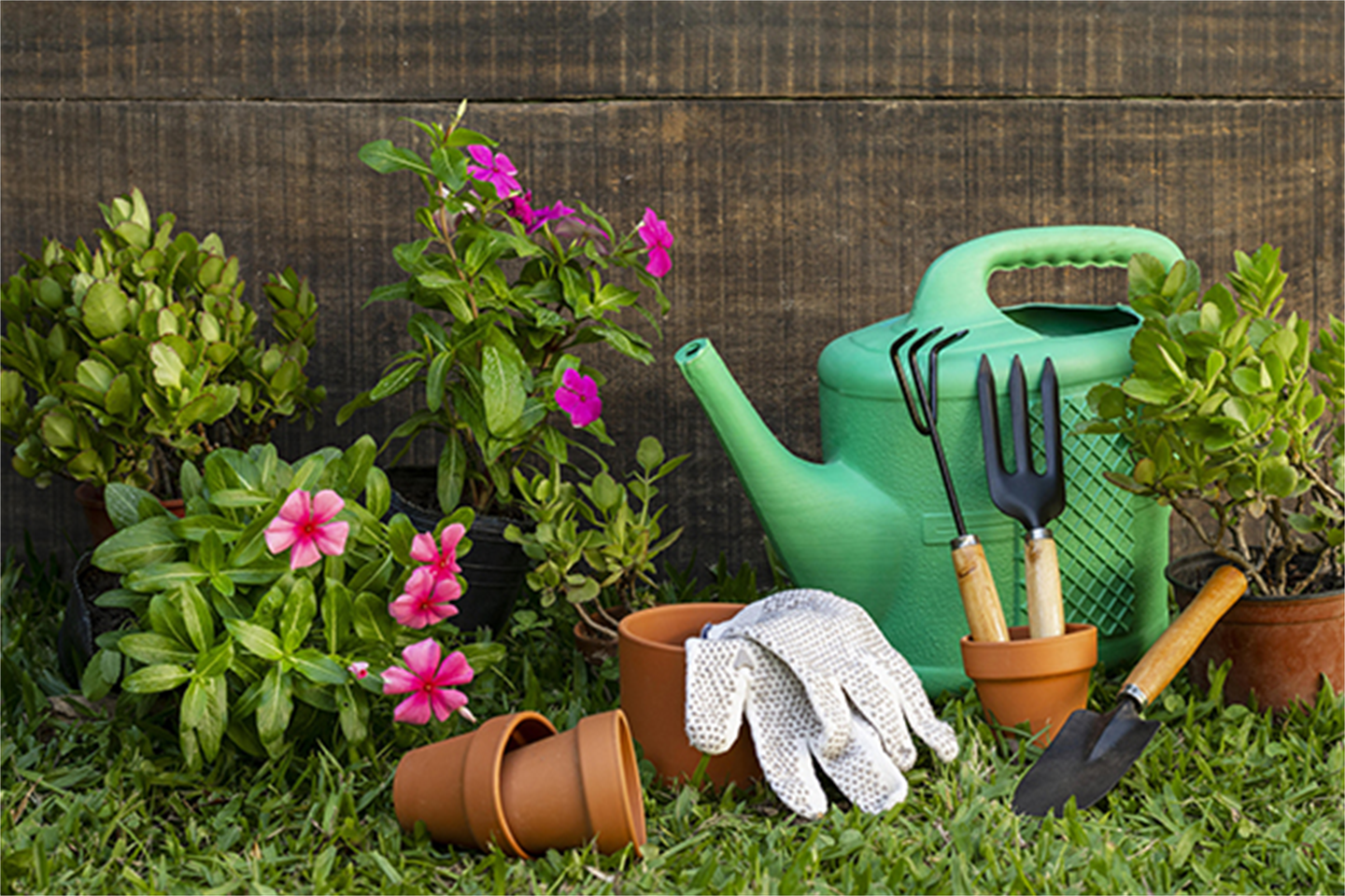 Embelezamento e a manutenção de canteiros, vasos e jardins.